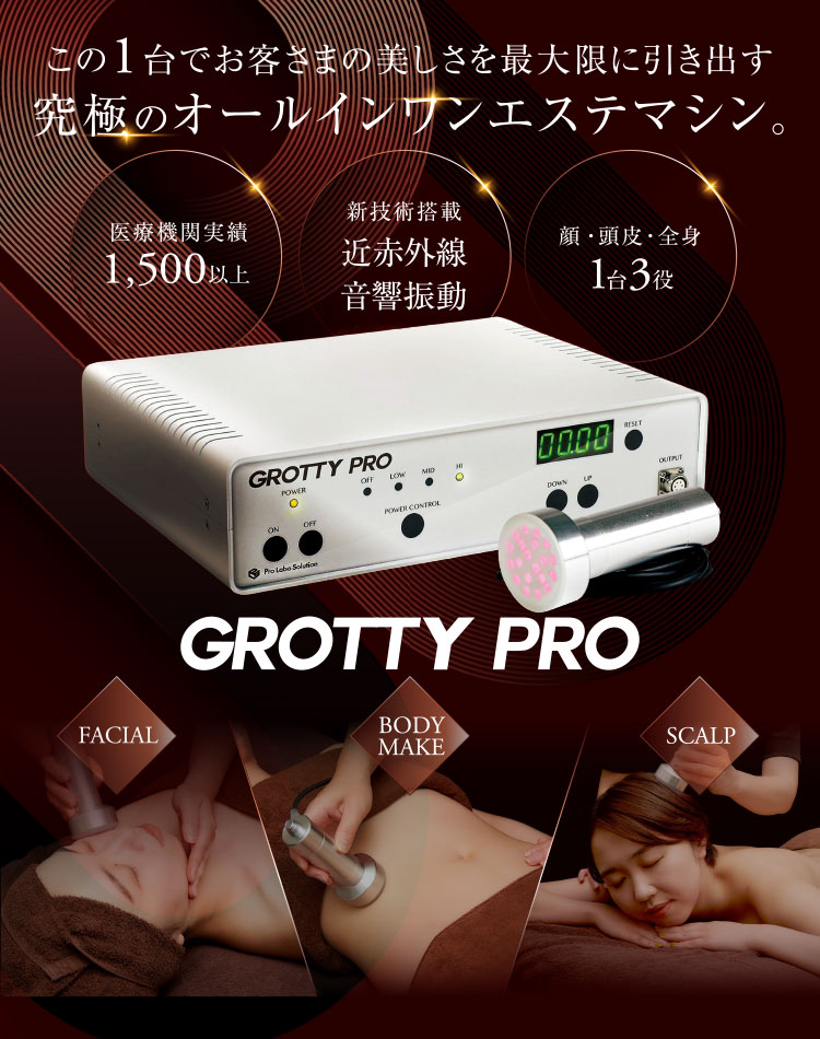 【グロッティプロ】を使用しフェイシャル・ボディ・スカルプのお悩みをスピード解決。